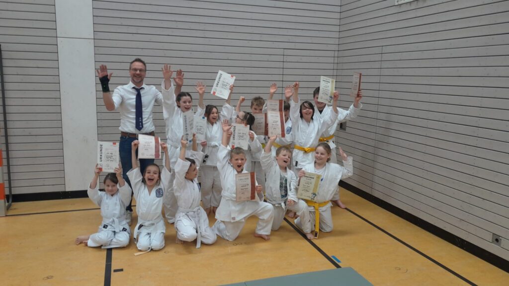 Folgende Teilnehmer konnten sich über ihre neuen Graduierungen freuen: Den Weißgurt mit gelbem Aufnäher erhielten: Lucia Hühnlein, Mino Hofmeister, Emilia Schneider, Pauline Reisinger und Leni Heigl. Den Gelbgurt erhielten: Georg Mauerer, Lena Völkl und Tobias Zwack, und den Gelb-Orangegurt erhielten: Tim Ritsch, Elias Zangl, Mica Wagensohn, Anton Schmidtlein und Florian Zwack.